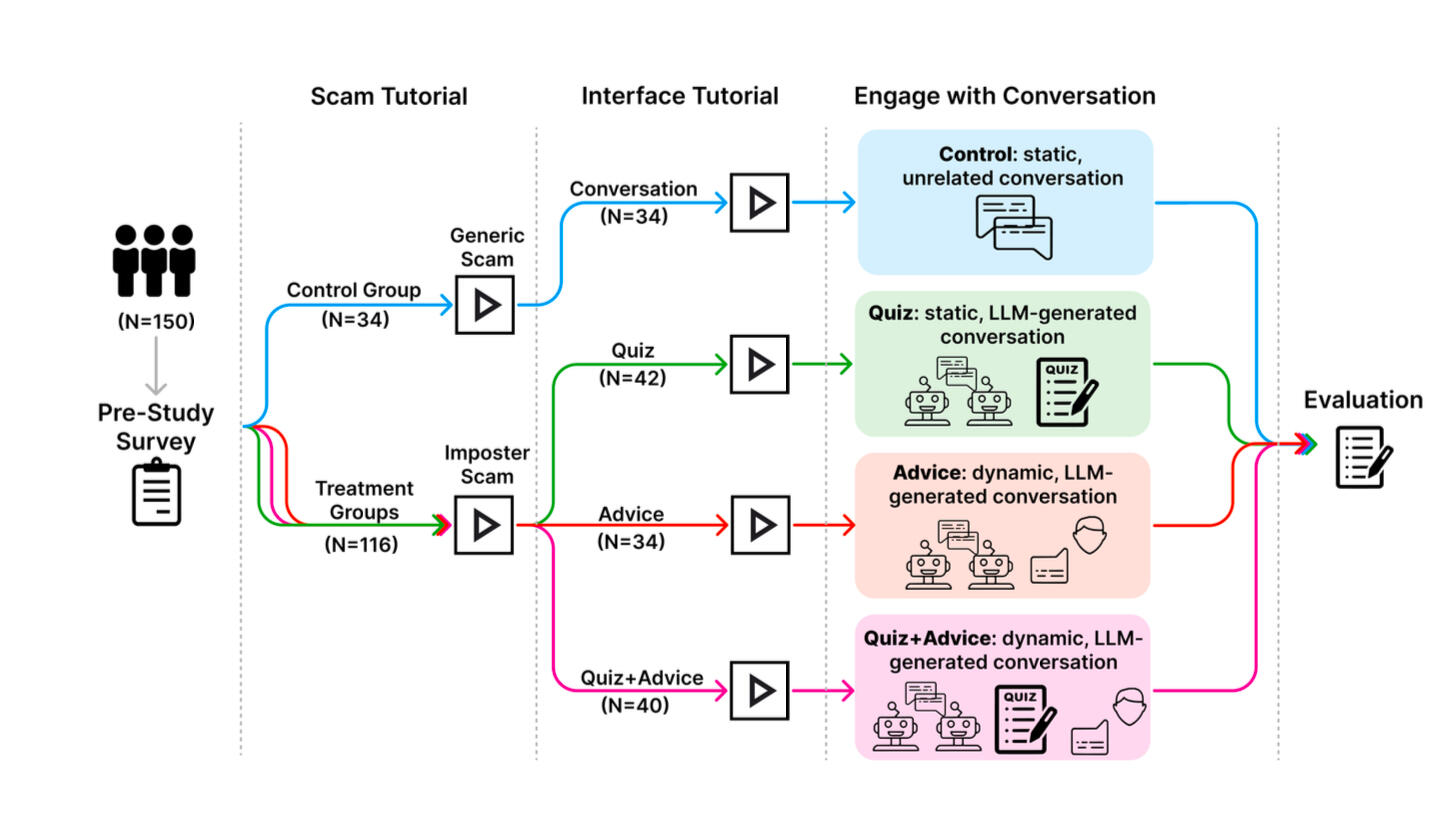 - Our experimental interface led to increased scam recognition, users' confidence, and users' confidence in the system, while not significantly making people more skeptical of real situations