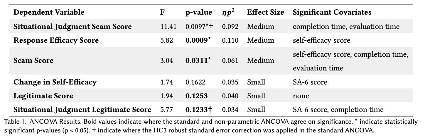 - Evaluated users' near transfer scam discernment, far transfer scam discernment, response efficacy, and self-efficacy