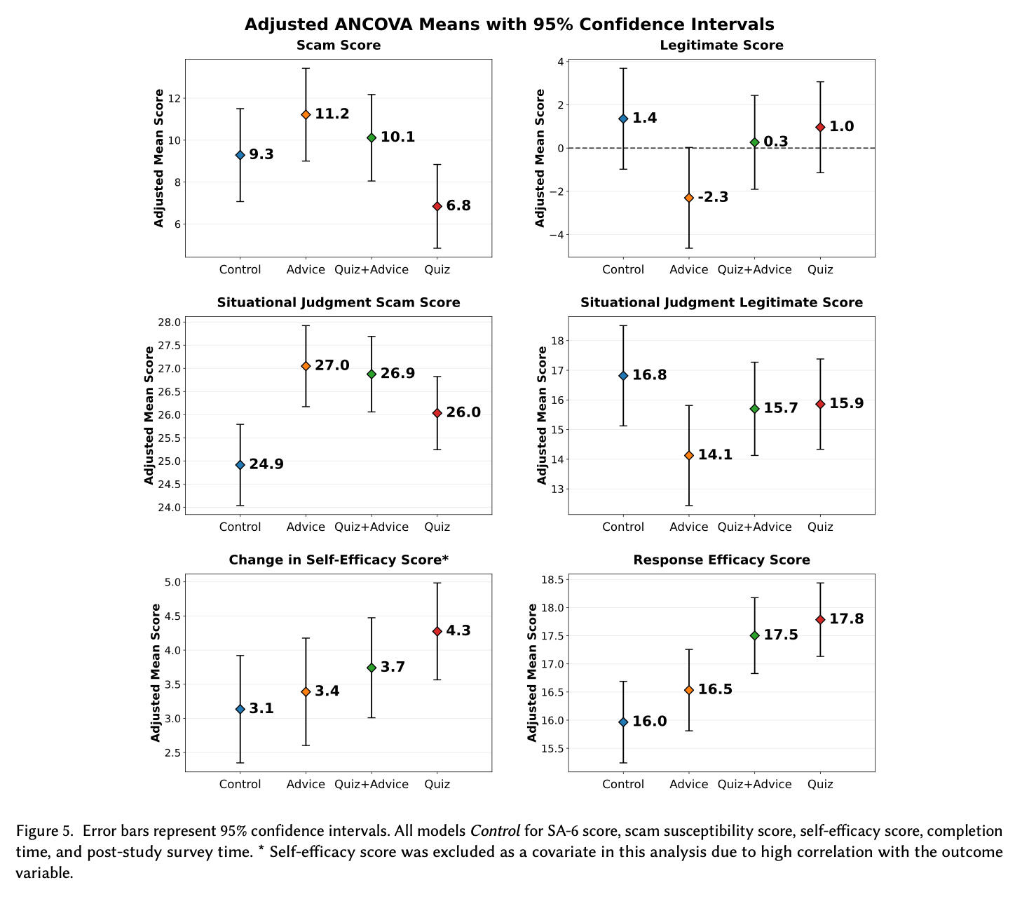 - Found that interface condition was a significant predictor for Situational Judgement Scam score, Response Efficacy, and Scam Score